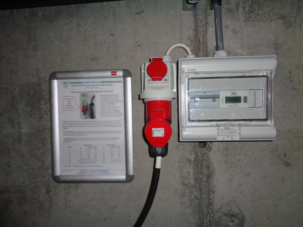 • An jedem Abstellplatz werden neben den erforderlichen Sicherheitseinrichtungen sogenannte Privatzähler installiert. Diese werden periodisch von Auge abgelesen, um den am Elektromobilität-Stromzähler des lokalen Energieversorgers angezeigten Verbrauch auf die einzelnen Nutzer aufzuteilen. Für die ersten paar Nutzer eine einfache, kostengünstige und zweckdienliche Lösung.